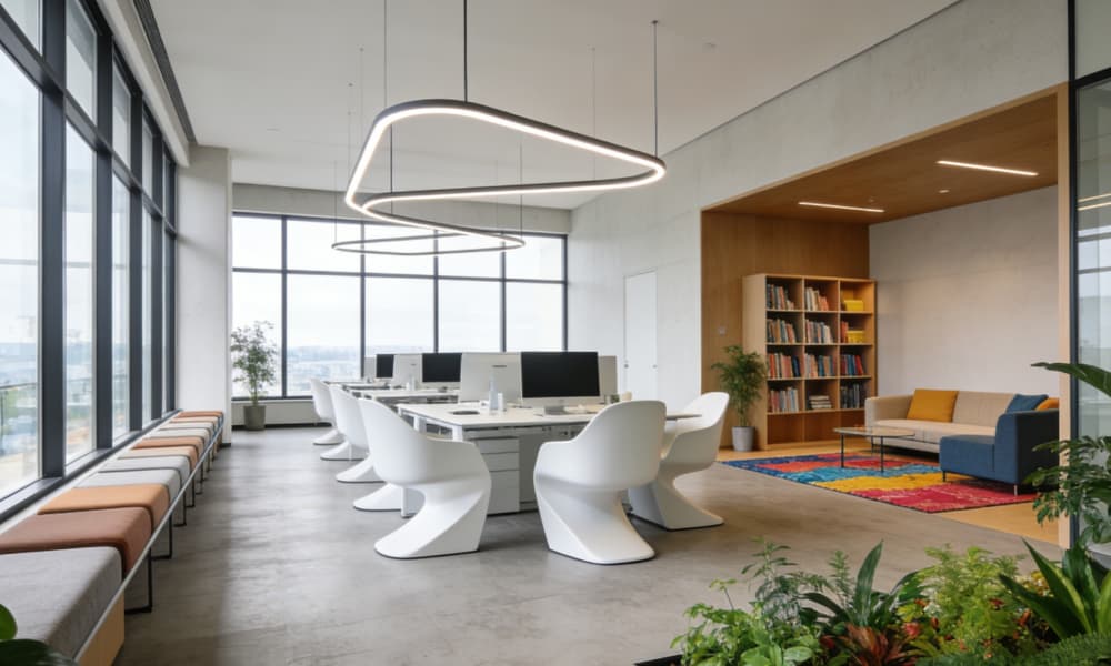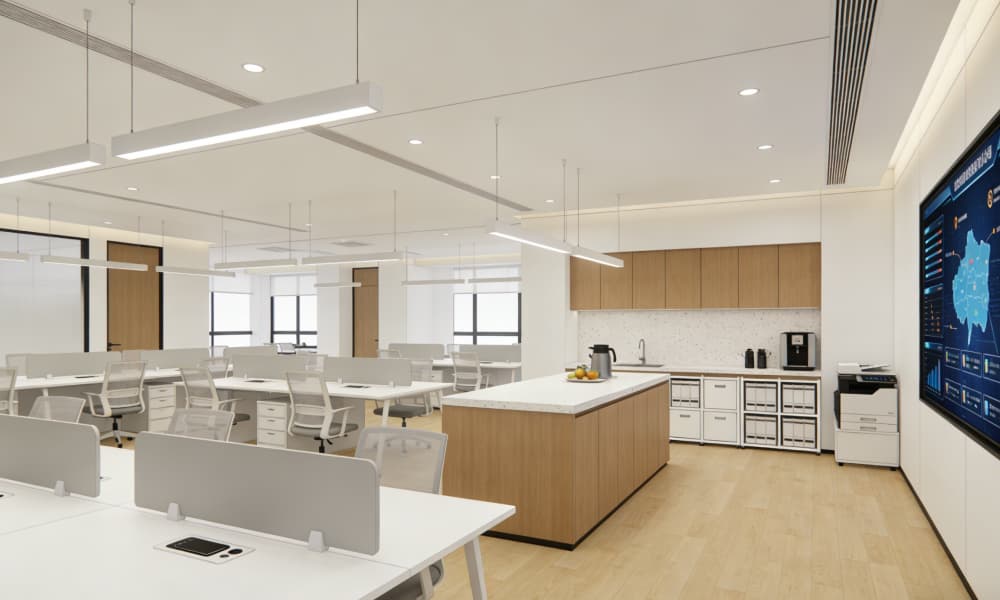 整體色調(diào)以白色、灰色為主,搭配少量黑色線條作為點綴,營造出簡潔大氣的視覺效果。材料運用上,注重質(zhì)感與耐用性,采用玻璃、金屬、石材等現(xiàn)代材質(zhì),彰顯工業(yè)場所的專業(yè)性與品質(zhì)感。在空間設(shè)計中,強調(diào)開放性與通透感,讓自然光線充分滲透,提高空間的舒適度與工作效率。
