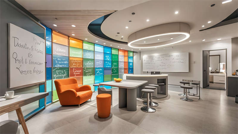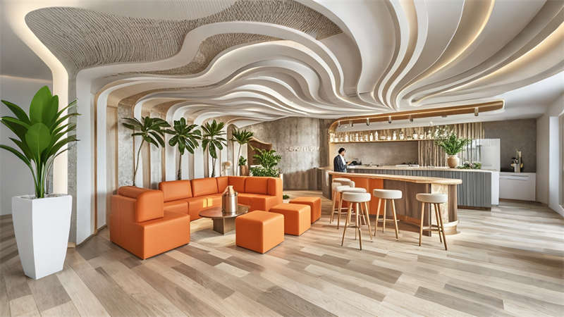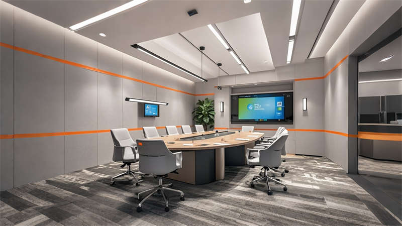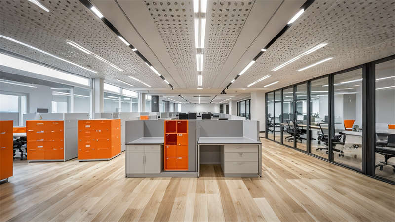 本項(xiàng)目為1800㎡現(xiàn)代簡約風(fēng)格辦公室整體設(shè)計(jì),以 ' 高效?活力?互聯(lián) ' 為核心設(shè)計(jì)理念??臻g規(guī)劃采用動靜分區(qū)原則,前廳通過淺灰大理石與橙色 logo 的碰撞凸顯企業(yè)形象,開放辦公區(qū)運(yùn)用玻璃隔斷保證采光與交流效率。色彩體系以企業(yè)標(biāo)準(zhǔn)色淺灰為主調(diào),搭配活力橙點(diǎn)綴,木色中和冷峻感。材質(zhì)選用環(huán)保型穿孔鋁板、防滑地磚和 E0 級板材,集成智能會議系統(tǒng)和隱藏式線管設(shè)計(jì)。重點(diǎn)空間如高管辦公室采用深胡桃木提升質(zhì)感,休息區(qū)通過波浪吊頂和模塊沙發(fā)營造輕松氛圍。照明系統(tǒng)采用 4000K 色溫 LED 線型燈帶,搭配局部裝飾吊燈,確保工作照度與空間美感平衡。全案貫徹人體工學(xué)設(shè)計(jì),預(yù)留 20% 彈性空間適應(yīng)未來發(fā)展需求。