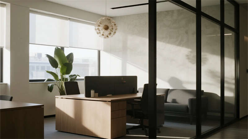 智能接待廳以流動(dòng)數(shù)字藝術(shù)傳遞先鋒調(diào)性,而健康茶水間則通過有機(jī)材質(zhì)與綠植裝置,構(gòu)建松弛有度的能量補(bǔ)給站。整體空間拒絕刻板分割,家具模塊可隨需求自由重組,金屬線條與低飽和色彩在自然光照下沉淀出理性而溫潤(rùn)的質(zhì)感。