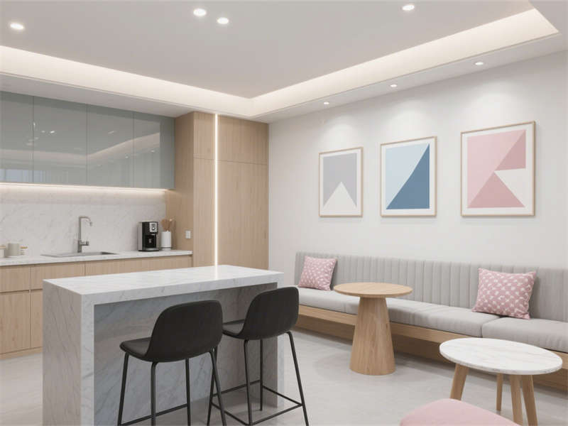 外觀設(shè)計上,采用淺灰色墻面搭配超白玻璃幕墻,玻璃內(nèi)側(cè)的品牌標識與門前綠植相呼應(yīng),弱化了建筑的冷硬感,展現(xiàn)出簡約大氣的辦公形象。進入室內(nèi),前臺接待區(qū)以淺灰與米白為基礎(chǔ)色調(diào),L型前臺搭配柔和燈光,等候區(qū)的布藝沙發(fā)與原木元素結(jié)合,給訪客帶來溫和專業(yè)的第一印象。?