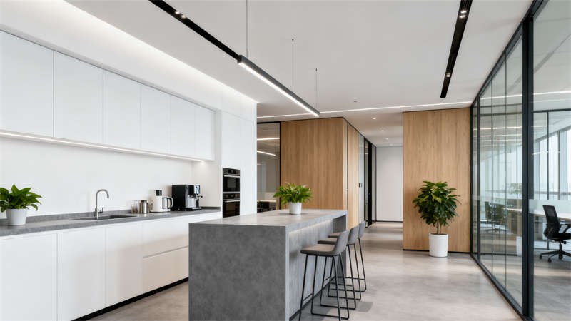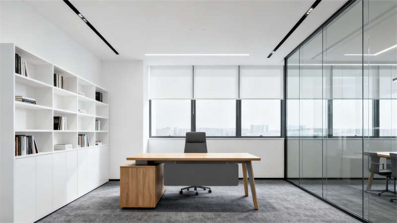 本設(shè)計圍繞現(xiàn)代簡約風格展開,整體色調(diào)以中性色為基底,搭配低飽和度的輔助色彩,營造出沉穩(wěn)且富有活力的辦公氛圍,與合肥這座城市兼具文化底蘊與現(xiàn)代氣息的特質(zhì)相契合。?