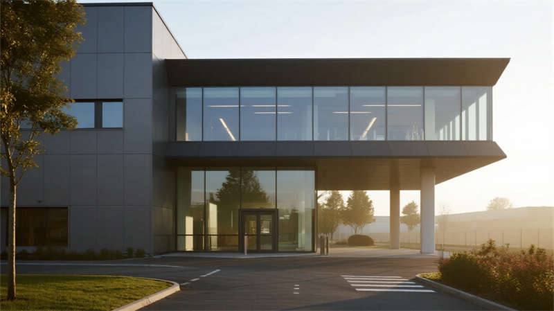 本設(shè)計(jì)以現(xiàn)代簡(jiǎn)約語(yǔ)言重構(gòu)廠(chǎng)房美學(xué)。設(shè)計(jì)摒棄冗余裝飾,聚焦材料本質(zhì)——銀灰金屬立面與通透玻璃幕墻形成虛實(shí)對(duì)比,利落線(xiàn)條切割出幾何體塊,在光影流動(dòng)中彰顯力量感。廠(chǎng)區(qū)布局強(qiáng)調(diào)功能與自然的共生:屋頂光伏板陣列呼應(yīng)綠色生產(chǎn)理念,嵌入式空中花園與竹林連廊為鋼鐵空間注入呼吸感,員工休憩區(qū)模糊了工業(yè)與生活的邊界。