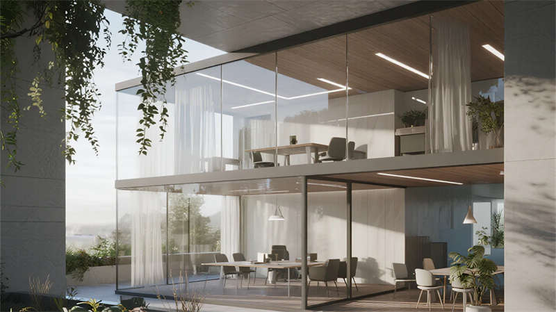 建筑內(nèi)部延續(xù)外部的純凈氣質(zhì),挑高車(chē)間利用天窗引入自然光源,無(wú)柱空間適配柔性生產(chǎn)線(xiàn);辦公區(qū)采用模塊化玻璃盒子,內(nèi)外視野交融,營(yíng)造開(kāi)放協(xié)作氛圍。夜幕降臨時(shí),線(xiàn)性燈光勾勒建筑輪廓,宛若大地上的發(fā)光雕塑,傳遞理性與溫度并存的工業(yè)美學(xué)。項(xiàng)目以蚌埠地域文化為靈感,用現(xiàn)代設(shè)計(jì)語(yǔ)言書(shū)寫(xiě)工業(yè)建筑新范式,成為兼具高效生產(chǎn)與人文關(guān)懷的可持續(xù)典范。