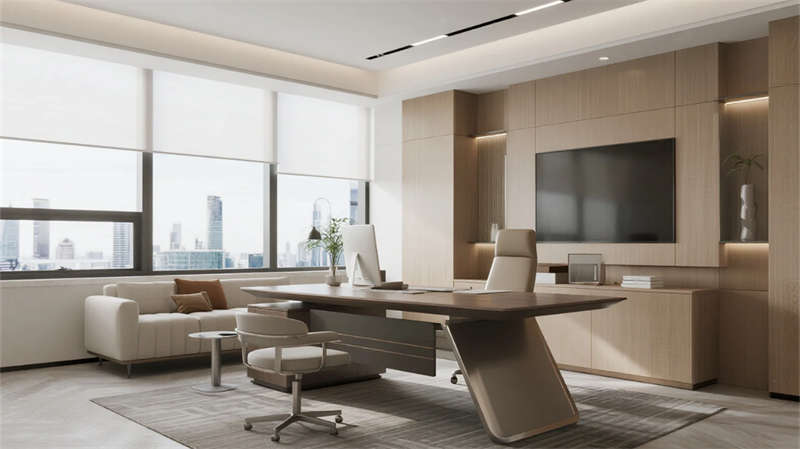 本設(shè)計(jì)以現(xiàn)代簡(jiǎn)約風(fēng)格為核心,強(qiáng)調(diào)功能與美學(xué)的和諧統(tǒng)一,為辦公環(huán)境注入靈動(dòng)活力。整體空間采用淺色調(diào)基座,搭配玻璃幕墻和金屬元素,營(yíng)造通透輕盈的視覺體驗(yàn)。辦公樓外觀以幾何線條勾勒城市天際線,大廳作為樞紐,以簡(jiǎn)約接待臺(tái)和綠植迎接訪客,傳遞專業(yè)與親和力。電梯間延續(xù)寧靜氛圍,鏡面設(shè)計(jì)拓展空間感。開放辦公區(qū)注重協(xié)作,靈活布局促進(jìn)效率,自然光透過落地窗灑滿區(qū)域,綠植分隔既美觀又環(huán)保。經(jīng)理辦公室和總裁辦公室以私密性與開放性平衡,簡(jiǎn)約家具與城市景觀結(jié)合,提升工作舒適度。會(huì)議室功能性強(qiáng),玻璃墻增強(qiáng)通透感,便于創(chuàng)意碰撞。樓頂花園作為休憩綠洲,綠色屋頂與簡(jiǎn)約座椅提供放松空間,呼應(yīng)環(huán)保理念。設(shè)計(jì)融入蚌埠地域特色,汲取城市活力與自然元素,打造高效、舒適且可持續(xù)的辦公環(huán)境,體現(xiàn)現(xiàn)代工作方式的優(yōu)雅蛻變。