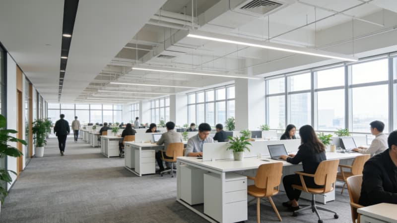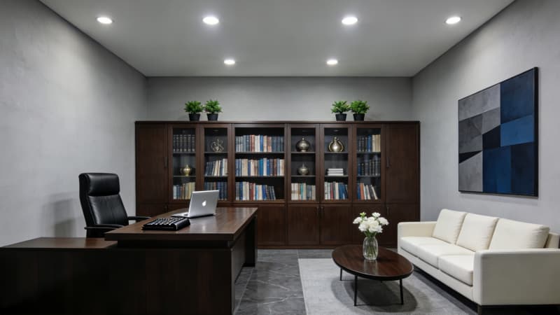 本案為蚌埠本土企業(yè)量身打造3000㎡全景式辦公室,以“地域文脈+現(xiàn)代辦公”為核心,將蚌埠淮河文化的溫婉底蘊與當代極簡美學相融。大樓外觀采用玻璃幕墻搭配淺灰金屬線條,簡約大氣中透著企業(yè)實力;前臺以溫潤石材與局部蚌殼紋理裝飾,暗藏地域符號。開放式辦公區(qū)規(guī)劃3個功能分區(qū),兼顧協(xié)作與私密,通透采光搭配靈活工位,適配多元辦公需求。經(jīng)理辦公室以沉穩(wěn)色系為主,嵌入定制收納系統(tǒng),平衡高效辦公與舒適體驗;總裁辦公室則融入輕奢元素,獨立茶歇區(qū)與全景落地窗結(jié)合,彰顯格局。會議室配備智能會議系統(tǒng),靈活切換研討、匯報等模式。整體設(shè)計既滿足3000㎡空間的功能分區(qū)合理性,又以細節(jié)傳遞蚌埠地域特質(zhì),為企業(yè)打造兼具實用性與品牌調(diào)性的辦公主場。