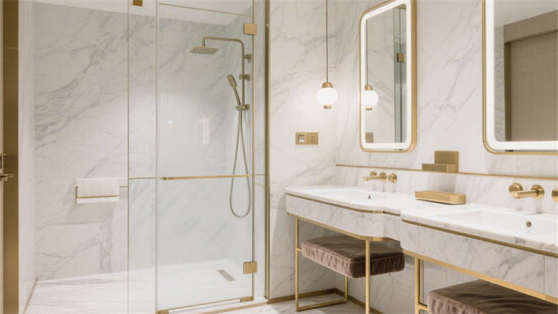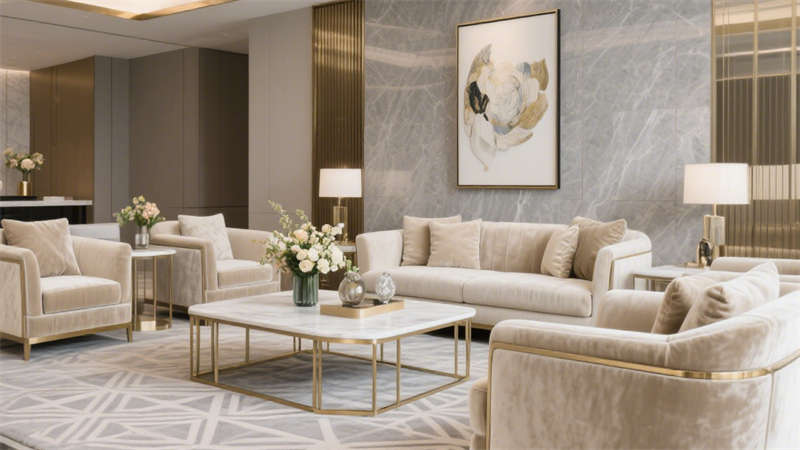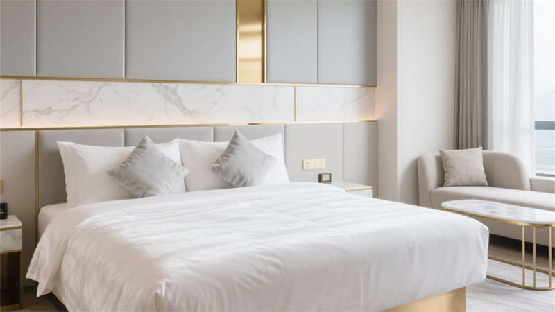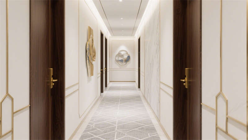 本設(shè)計(jì)以輕奢風(fēng)格為核心,通過柔和的基底色調(diào)與精致的細(xì)節(jié)搭配,構(gòu)建出兼具質(zhì)感與舒適度的酒店環(huán)境。空間以米白色與淺灰色為基礎(chǔ),巧妙融入金色金屬線條作為點(diǎn)綴,既避免了過度奢華的厚重感,又增添了空間的精致度。墻面與地面選用細(xì)膩的大理石紋理材質(zhì),在光線映襯下呈現(xiàn)出自然的光澤,提升整體空間的高級(jí)感。家具選型注重線條的簡(jiǎn)約流暢,搭配柔軟的布藝軟裝,營造出溫馨舒適的居住氛圍。各個(gè)區(qū)域在設(shè)計(jì)上保持風(fēng)格統(tǒng)一,從公共空間到客房區(qū)域,都延續(xù)了輕奢的設(shè)計(jì)語言,讓整體空間既富有格調(diào),又能給人帶來放松愜意的居住體驗(yàn)。