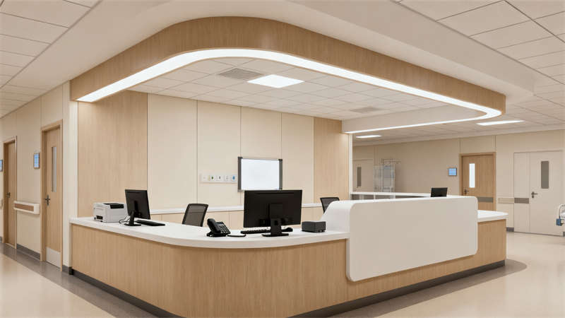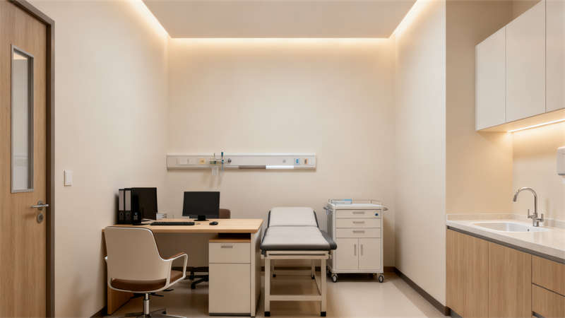 室內(nèi)空間延續(xù)外觀的簡約基調(diào),在材質(zhì)與色彩選擇上保持一致性。大廳以淺米色墻面搭配淺灰色地面,搭配暖白色燈光,營造出溫馨舒適的氛圍,緩解患者就醫(yī)時的緊張情緒;診室設(shè)計注重實用性與私密性,合理劃分診療區(qū)域與候診區(qū)域,墻面采用易清潔的環(huán)保材質(zhì),確保醫(yī)療環(huán)境的衛(wèi)生安全;病房以淺色系為主,搭配柔和的窗簾與溫馨的裝飾,為患者提供安靜舒適的康復(fù)環(huán)境,同時考慮到醫(yī)療需求,合理布置醫(yī)療設(shè)備擺放空間,兼顧舒適性與功能性;手術(shù)室采用潔凈度高的專業(yè)裝修材質(zhì),色調(diào)以純凈的白色為主,搭配藍色輔助色,營造出嚴(yán)謹(jǐn)專業(yè)的手術(shù)環(huán)境,確保手術(shù)過程的安全無菌;藥房設(shè)計注重藥品存儲的規(guī)范性與取藥流程的便捷性,合理劃分藥品分類區(qū)域,采用透明玻璃隔斷,提升取藥過程的透明度;護士站設(shè)計為開放式與半封閉式結(jié)合,方便護士與患者溝通,同時保證護士工作區(qū)域的有序性;康復(fù)訓(xùn)練室則根據(jù)康復(fù)需求,合理規(guī)劃訓(xùn)練區(qū)域,搭配適合康復(fù)訓(xùn)練的器械與柔和的空間色調(diào),為患者提供舒適的康復(fù)訓(xùn)練環(huán)境。整體裝修設(shè)計從患者需求與醫(yī)療功能出發(fā),在風(fēng)格統(tǒng)一的基礎(chǔ)上,實現(xiàn)了不同空間的功能適配,打造出兼具溫馨感與專業(yè)性的現(xiàn)代化醫(yī)院空間