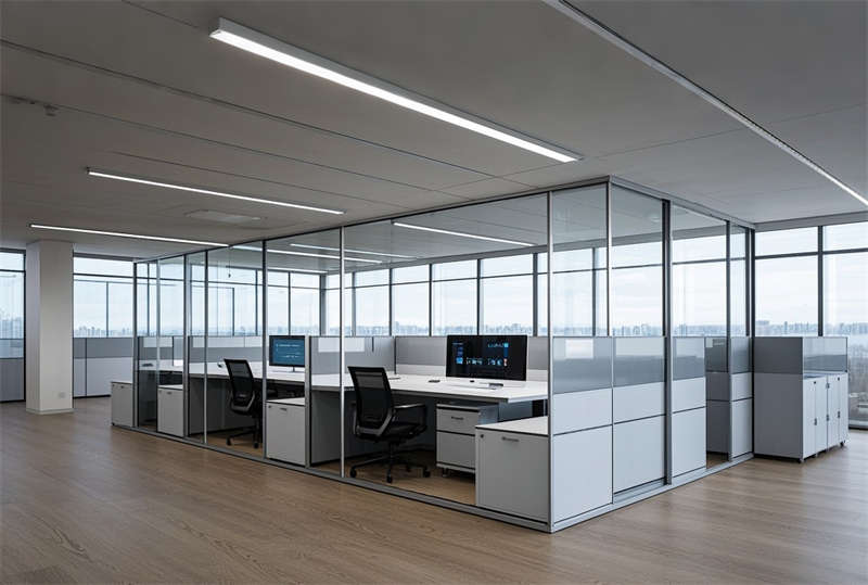 本案為 6000 平方米現(xiàn)代化科技辦公樓裝修項目,設計采用 ' 未來辦公生態(tài) ' 理念,以藍灰主色調(diào)構建專業(yè)商務氛圍??臻g規(guī)劃突破傳統(tǒng)格局,大堂設置 10 米挑空 LED 藝術裝置墻,智能光控系統(tǒng)實現(xiàn)晝夜模式切換。開放式辦公區(qū)采用模塊化組合家具,集成無線充電、智能升降等人性化功能。會議室配置可觸控霧化玻璃隔斷系統(tǒng),實現(xiàn)空間靈活轉換。特別設計的階梯會議中心配備全景聲控系統(tǒng),墻面采用吸音穿孔鋁板確保會議私密性。環(huán)保理念貫穿始終,選用零甲醛板材和可回收地毯,屋頂花園配置雨水收集系統(tǒng)。燈光設計采用色溫可調(diào) LED 光源,通過智能中控系統(tǒng)實現(xiàn)場景模式一鍵切換,打造高效、舒適、可持續(xù)發(fā)展的新型辦公生態(tài)圈。