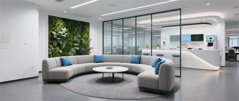 這座金融企業(yè)辦公樓的設計以智能科技融合為核心,巧妙結合現(xiàn)代簡約美學與功能性,為日常辦公注入活力與效率。整體空間采用流暢的線條和中性色調(diào),通過玻璃隔斷和金屬細節(jié)營造通透感,藍色元素作為視覺亮點,象征創(chuàng)新與穩(wěn)定。大堂區(qū)以開放式布局歡迎訪客,智能照明系統(tǒng)調(diào)節(jié)氛圍;開放式辦公區(qū)強調(diào)協(xié)作,可調(diào)節(jié)家具提升舒適度;高管辦公室則注重私密與高效,落地窗引入自然光。會議室配備先進投影技術,確保討論精準;休息區(qū)和食堂區(qū)融入綠植與社交元素,促進員工放松;多功能廳支持靈活轉型,滿足多樣活動;休閑區(qū)融合健身與閱讀,體現(xiàn)人文關懷。設計不僅優(yōu)化工作流線,還強化了企業(yè)形象,將科技感與舒適性無縫銜接,打造一個前瞻性的辦公環(huán)境。位于合肥的這座空間,以城市現(xiàn)代精神為靈感,成為金融行業(yè)的標桿之作。