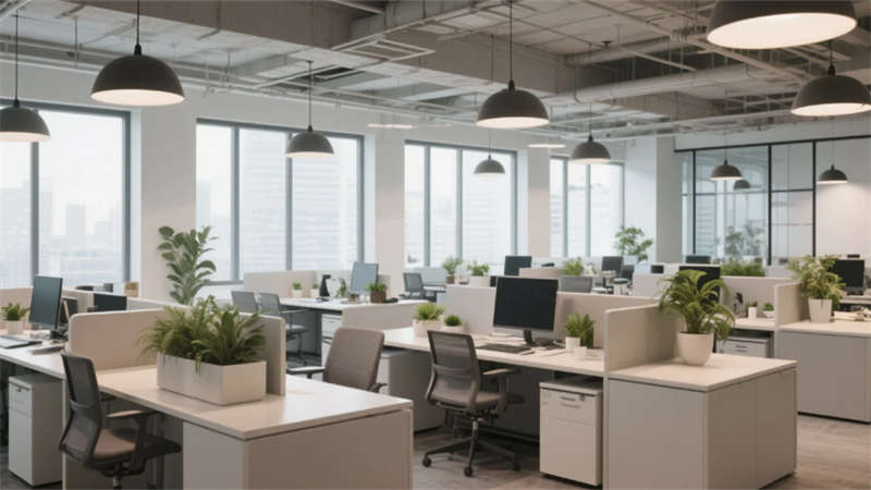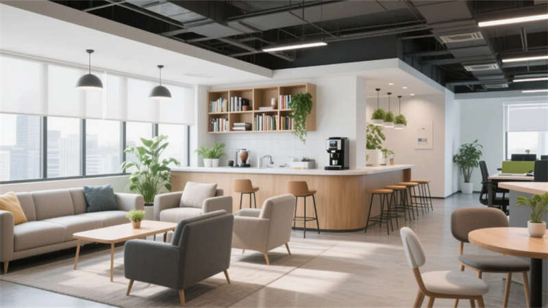 本辦公樓設計以簡約現(xiàn)代風格為核心,打造一個統(tǒng)一而流暢的空間體驗。整體強調功能性、舒適性和美學平衡,每個功能區(qū)均采用中性色調、干凈線條和自然元素,營造出寧靜和諧的環(huán)境。大堂入口以開放通透的布局迎接用戶,結合玻璃幕墻和木質細節(jié),傳遞專業(yè)而溫馨的第一印象。開放式辦公區(qū)通過模塊化家具和充足采光,促進團隊協(xié)作與效率。會議室設計注重靈活性,透明隔斷和集成設備支持高效交流。員工休息區(qū)和餐廳咖啡吧作為社交中心,提供舒適休閑空間,增強員工福祉。經(jīng)理辦公室平衡隱私與開放性,簡約家具營造專注氛圍。走廊和衛(wèi)生間延續(xù)統(tǒng)一美學,注重清潔與引導性,確??臻g銜接自然。