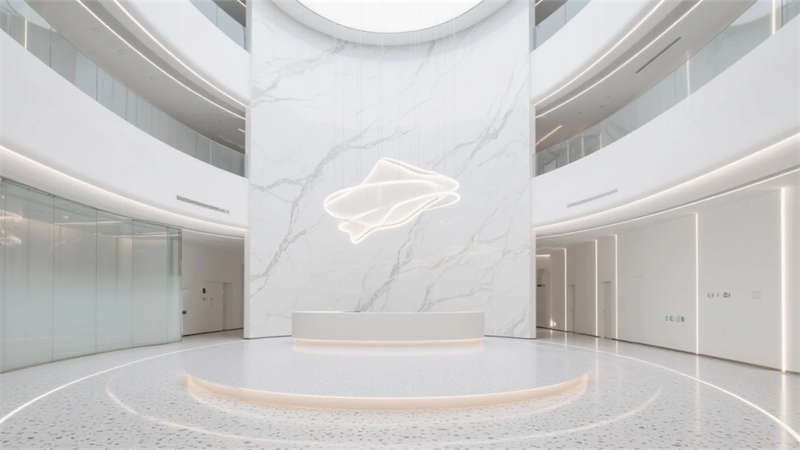這不僅是容納工作的容器,更是滋養(yǎng)創(chuàng)新的生態(tài)系統(tǒng)。光庭底部的交互裝置實(shí)時(shí)可視化園區(qū)能源消耗,員工通過手機(jī)調(diào)整個(gè)人碳足跡;研發(fā)走廊的觸摸墻可一鍵預(yù)約實(shí)驗(yàn)室設(shè)備,物理空間與數(shù)字系統(tǒng)形成雙生鏡像。當(dāng)晨曦穿過中庭天窗,在懸浮樓梯投下幾何光斑,建筑本身已成為科技精神的朝圣地——這里沒有傳統(tǒng)辦公樓的機(jī)械重復(fù),只有持續(xù)進(jìn)化的空間智能體,在合肥的創(chuàng)新大地上生長為聯(lián)結(jié)過去與未來的永恒坐標(biāo)。