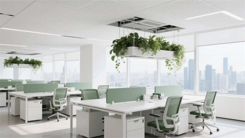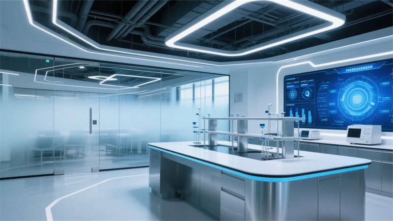 辦公空間呈現(xiàn)去中心化的未來圖景。模塊化工位可隨時(shí)重組為頭腦風(fēng)暴環(huán)島,聲學(xué)織物包裹的膠囊艙提供深度思考庇護(hù)所。最具革命性的是“實(shí)驗(yàn)室劇場”,研發(fā)設(shè)備的機(jī)械美學(xué)被提升為空間敘事的主角,集成于銀色島臺(tái)的精密儀器與頂部藝術(shù)化排布的管線系統(tǒng),構(gòu)成科技崇拜的現(xiàn)代祭壇。霧化玻璃墻在透明與隱私模式間瞬時(shí)切換,象征知識(shí)共享與知識(shí)產(chǎn)權(quán)保護(hù)的辯證統(tǒng)一。