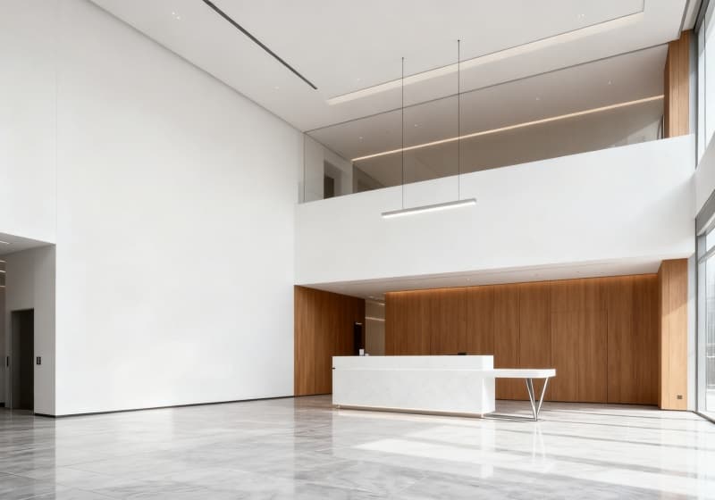 本設計圍繞現(xiàn)代辦公需求展開,以簡約大氣的風格為核心,兼顧實用性與美學感,讓辦公樓既符合當代辦公節(jié)奏,又能傳遞沉穩(wěn)專業(yè)的氣質。外觀設計采用簡潔的線條與通透的玻璃材質,搭配溫潤的金屬線條點綴,弱化建筑的厚重感,呈現(xiàn)出輕盈且富有質感的視覺效果,與周邊環(huán)境自然融合,同時確保采光充足,為室內空間奠定明亮的基礎。?