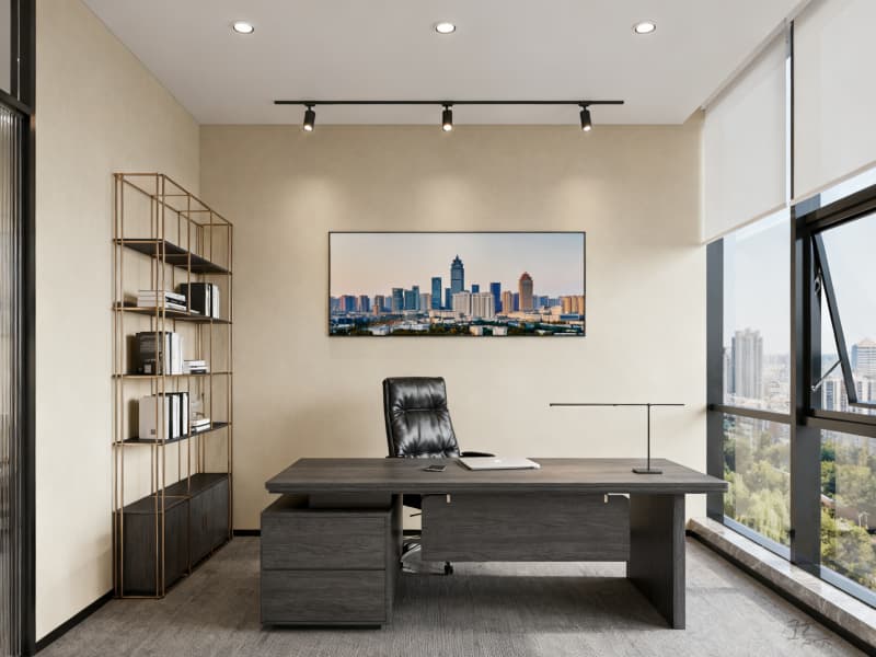 細(xì)節(jié)設(shè)計(jì)中,注重材質(zhì)的環(huán)保性與耐用性,選用低甲醛涂料、防滑耐磨地磚、靜音地毯等優(yōu)質(zhì)材料;融入智能系統(tǒng),如智能會(huì)議設(shè)備、無(wú)線充電模塊、智能照明等,提升辦公便捷度;通過(guò)落地玻璃窗、分散式照明等設(shè)計(jì)引入充足自然光線,減少空間壓抑感,同時(shí)搭配綠植裝飾,改善辦公環(huán)境。整體設(shè)計(jì)既滿足現(xiàn)代商務(wù)辦公的高效需求,又通過(guò)人性化細(xì)節(jié)與地域元素的融合,為企業(yè)打造兼具質(zhì)感與實(shí)用性的優(yōu)質(zhì)辦公載體。