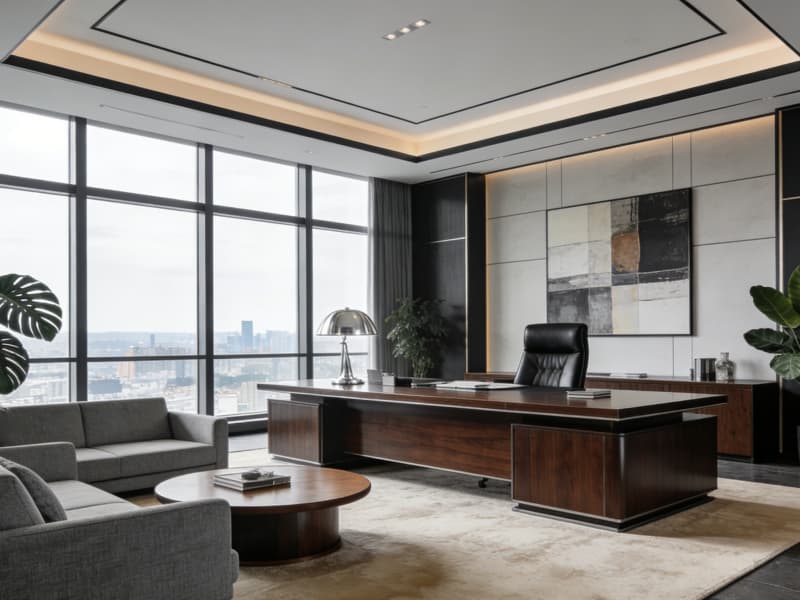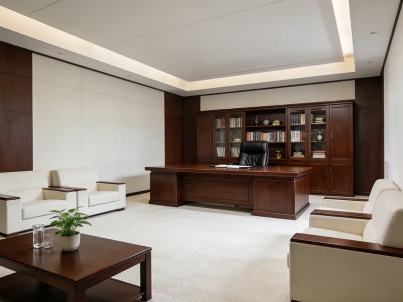 領導及總裁辦公室則兼顧私密性與格調(diào),總裁辦公室以沉穩(wěn)色系為主,配備智能辦公系統(tǒng)與獨立茶歇區(qū),彰顯企業(yè)實力;領導辦公室側重簡約實用,細節(jié)處融入定制化收納設計。會議室按不同規(guī)模定制,從中小型研討室到大型多功能廳,均配備高清會議系統(tǒng)與聲學優(yōu)化設計,滿足各類商務場景需求,全方位適配合肥企業(yè)高質(zhì)量發(fā)展的辦公需求。