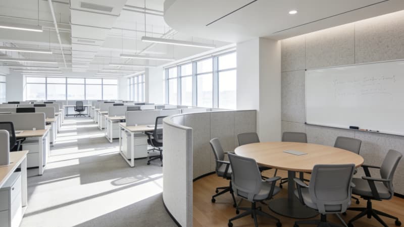 合肥6000㎡辦公樓設計,以“高效、健康、智能”為核心,打造適配企業(yè)全發(fā)展階段的辦公空間。采用“40%獨立辦公+30%開放工位+30%協(xié)作休閑”科學布局,最大化利用每一寸空間。