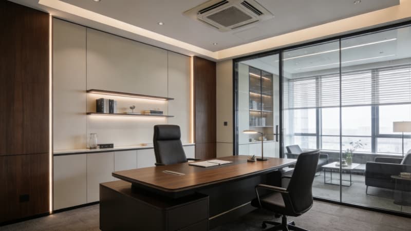 融入智能環(huán)境控制系統(tǒng),自動調節(jié)溫濕度與燈光;搭配人體工學家具、中央新風系統(tǒng),為員工筑牢健康屏障。整體采用現(xiàn)代簡約風格,摒棄冗余裝飾,通過色彩與材質碰撞凸顯企業(yè)質感,同時預留品牌文化植入空間。