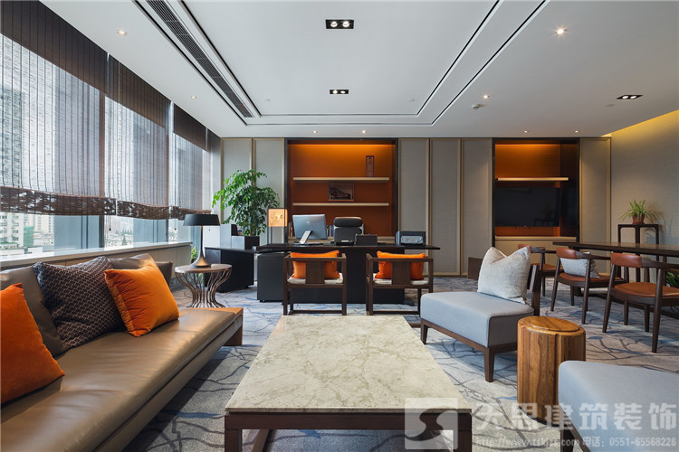“你站在橋上看風(fēng)景,看風(fēng)景的人在樓上看你。明月裝飾了你的窗子,你裝飾了別人的夢。”人與人、人與景之間的交織互動(dòng)在卞之琳的《斷章》里詩意呈現(xiàn),也同樣貼合設(shè)計(jì)師為同進(jìn)置業(yè)公司辦公室定下的設(shè)計(jì)思路。他的空間設(shè)計(jì)結(jié)合江景地利、都市人文,在實(shí)用功能、格調(diào)品位之外,借助綠植規(guī)劃等巧妙手法,進(jìn)一步突顯地產(chǎn)公司的職業(yè)形象與社會(huì)責(zé)任,不僅充分納景入室,更樹立起友好對外界面,成為一道嶄新的綠色都市風(fēng)景。