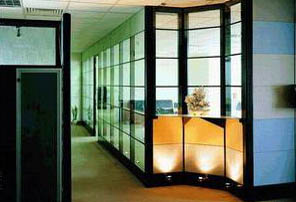 彩色玻璃隔斷是以彩藝玻璃作一種隔斷主體,主要是利用玻璃色彩變幻,營造出非凡藝術(shù)效果的辦公室隔斷,選用彩色玻璃隔斷時(shí),最重要的是色調(diào)要與辦公室的整體裝飾設(shè)計(jì)風(fēng)格保持一致。