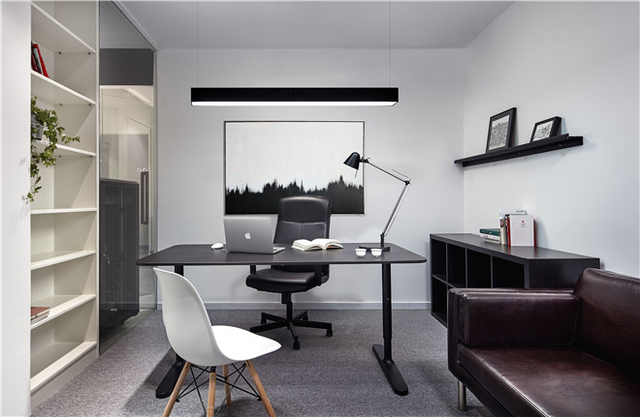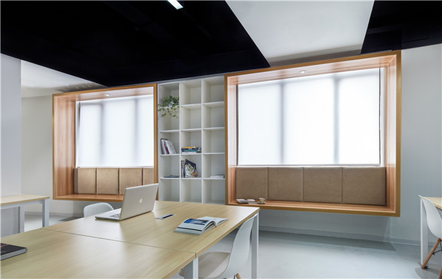 在78平空間內(nèi)布置20個(gè)工位、茶水間、會(huì)議室和一個(gè)獨(dú)立辦公室并不容易,設(shè)計(jì)師在平面功能最大化,營造豐富的灰空間,消除辦公空間以往嚴(yán)肅緊張的固有印象。黑白極簡的設(shè)計(jì)語言在節(jié)省造價(jià)的同時(shí)完美契合了IT公司的現(xiàn)代感與科技感,而木質(zhì)的飄窗是整個(gè)黑白空間的一抹暖色,在有限的面積中為員工營造了輕松的閱讀與交流空間。豐富的玻璃隔斷形成通透的空間,相互貫穿,模糊了空間屬性,從而削弱小空間帶來的局促感。