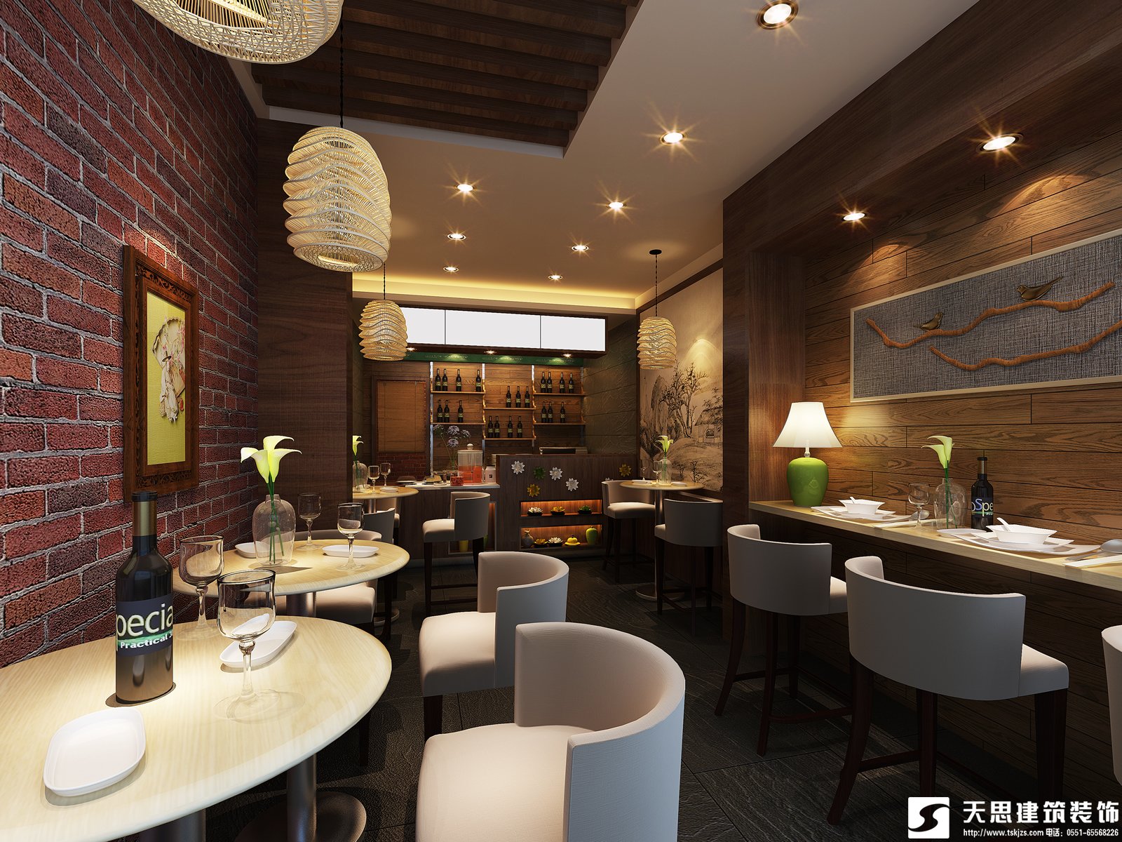這種規(guī)劃選用園林的自由組合的特色,將室內(nèi)的某一有些聯(lián)系歇息區(qū)處理成小橋流水,而其他各有些聯(lián)系園林的漏窗與隔扇,將靠窗或靠墻的有些進行較為通透的二次分隔,區(qū)分出首要就餐區(qū)與若干非必須就餐區(qū),以確保某些就餐區(qū)具有必定的緊密性。以滿意有些顧客的需求,這些就餐區(qū)的區(qū)分還能夠經(jīng)過地上的升起和頂棚的部分下降來到達。這種園林式的空司給人以室內(nèi)空間室外化的感受,猶如置身于花園當中,使人心情舒暢,增進胃口。與這類規(guī)劃方法相干系的裝修個性與細部常選用園林的符號與做法。還會在周圍添加一些綠色植物。