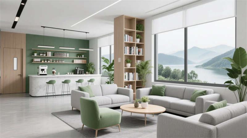 這座辦公室設(shè)計以滁州為靈感,融合自然與創(chuàng)新元素,打造出和諧高效的工作環(huán)境。整體采用現(xiàn)代簡約風(fēng)格,線條流暢而開放,中性色調(diào)搭配木質(zhì)細(xì)節(jié),營造出清爽視覺統(tǒng)一感。設(shè)計中強調(diào)生態(tài)連接:綠植貫穿各功能區(qū),如休息區(qū)的山水窗景和協(xié)作區(qū)的綠植墻,呼應(yīng)滁州的自然環(huán)境,提升員工舒適度與歸屬感。核心亮點在于靈活空間規(guī)劃——模塊化家具和可移動隔斷支持快速重組,適應(yīng)不同工作模式,從專注區(qū)到協(xié)作區(qū),無縫切換個人與團隊需求。茶水間和休息區(qū)融入社交元素,鼓勵非正式交流,而經(jīng)理辦公室的私密會談區(qū)則平衡了效率與人文關(guān)懷。照明設(shè)計巧妙利用自然光與LED結(jié)合,減少能耗,同時綠植點綴凈化空氣,體現(xiàn)可持續(xù)理念。最終,空間不僅提升生產(chǎn)力,更成為滁州城市活力的縮影,彰顯現(xiàn)代辦公的進化方向。
