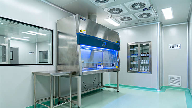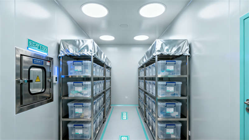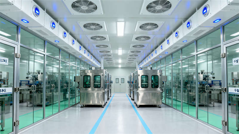 室內(nèi)空間劃分清晰,入口風(fēng)淋室作為潔凈第一道防線,搭配專(zhuān)屬衣柜區(qū),助力人員規(guī)范進(jìn)入;核心生產(chǎn)區(qū)以通透玻璃隔斷劃分,搭配高效過(guò)濾設(shè)備,營(yíng)造潔凈通透的操作環(huán)境,操作人員身著專(zhuān)業(yè)潔凈服,盡顯規(guī)范作業(yè)氛圍。輔助區(qū)域同樣注重細(xì)節(jié),物料暫存間采用防塵物料架與傳遞窗設(shè)計(jì),確保物料潔凈存儲(chǔ)與轉(zhuǎn)運(yùn);無(wú)菌實(shí)驗(yàn)室配置專(zhuān)業(yè)安全柜與試劑柜,滿(mǎn)足高潔凈等級(jí)操作需求;潔凈走廊通過(guò)清晰標(biāo)識(shí)引導(dǎo)動(dòng)線,連接各功能區(qū)域,提升空間流轉(zhuǎn)效率;空調(diào)機(jī)房作為動(dòng)力核心,設(shè)備布局規(guī)整,保障整體潔凈系統(tǒng)穩(wěn)定運(yùn)行。?
