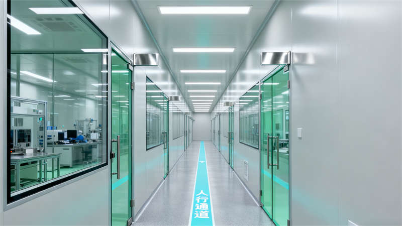 本設(shè)計(jì)以潔凈需求為核心,兼顧功能實(shí)用性與空間協(xié)調(diào)性,打造適配多場(chǎng)景的無(wú)塵環(huán)境。外觀上,建筑主體采用簡(jiǎn)潔的淺灰色調(diào),搭配密封性能優(yōu)良的玻璃外窗與感應(yīng)式自動(dòng)門(mén),既凸顯工業(yè)質(zhì)感,又從源頭減少外界污染侵入。?