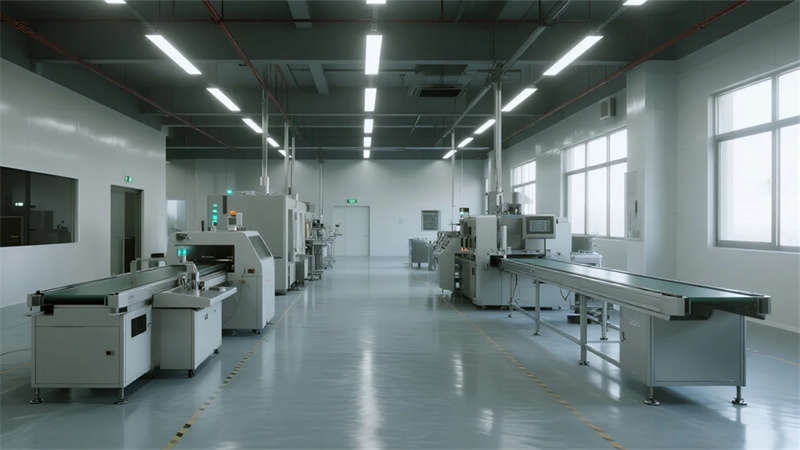 本設(shè)計(jì)以現(xiàn)代簡(jiǎn)約語(yǔ)言重構(gòu)生產(chǎn)空間美學(xué),摒棄冗余裝飾,通過淺灰混凝土與深灰金屬的材質(zhì)碰撞,塑造冷靜而高效的視覺基調(diào)。整面玻璃幕墻的運(yùn)用模糊內(nèi)外界限,將自然天光與山景綠意引入每個(gè)角落。