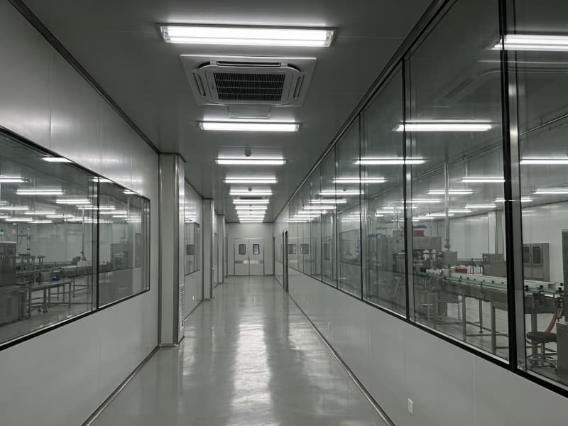 走進內部,生產區(qū)按照嚴格的GMP標準設計。地面采用無縫、耐腐蝕的環(huán)氧自流平,墻壁選用光潔、抗菌的金屬板,便于清潔與消毒。頂部的凈化空調系統(tǒng)與照明設備一體化設計,保證生產環(huán)境的潔凈與適宜光照。不同生產工序區(qū)域通過透明玻璃隔斷劃分,既保證空間通透,又防止交叉污染。