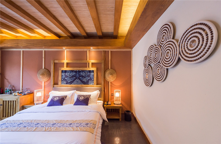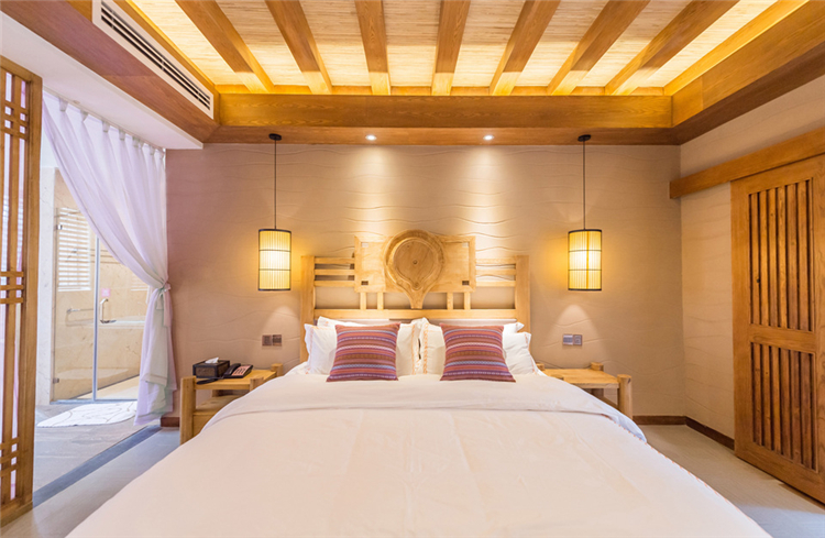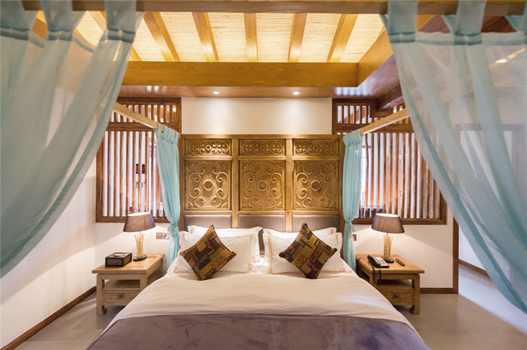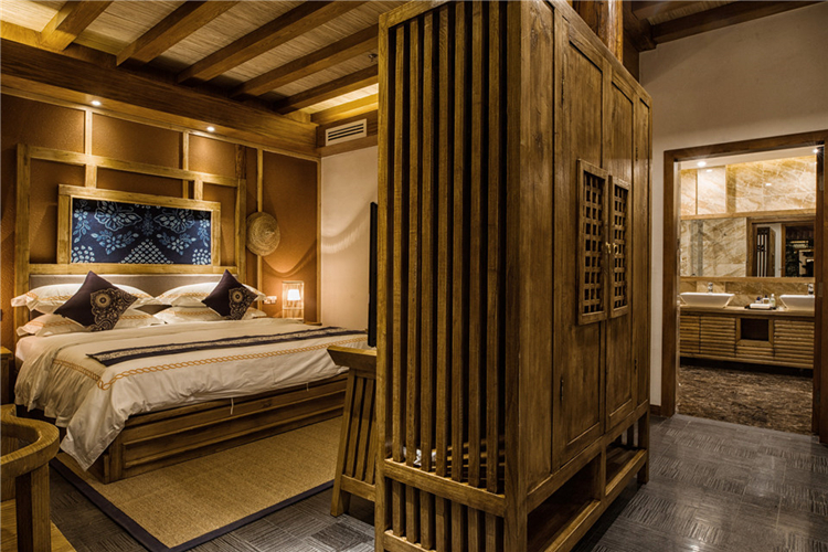設(shè)計(jì)理念:鏤空隔斷,木質(zhì)材料的建筑體和磚石融為一體;水榭亭臺(tái),回廊木椅,大量木質(zhì)材料運(yùn)用到門窗、家具、吊頂、地板、衣柜等區(qū)域,配合木質(zhì)的造型、雕花等,燈光設(shè)計(jì)與軟裝相呼應(yīng),燈光顯形,軟裝在燈光的照射下散發(fā)出軟裝配飾原有的色彩,營(yíng)造出溫馨而絢爛的印象。