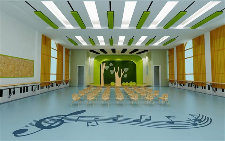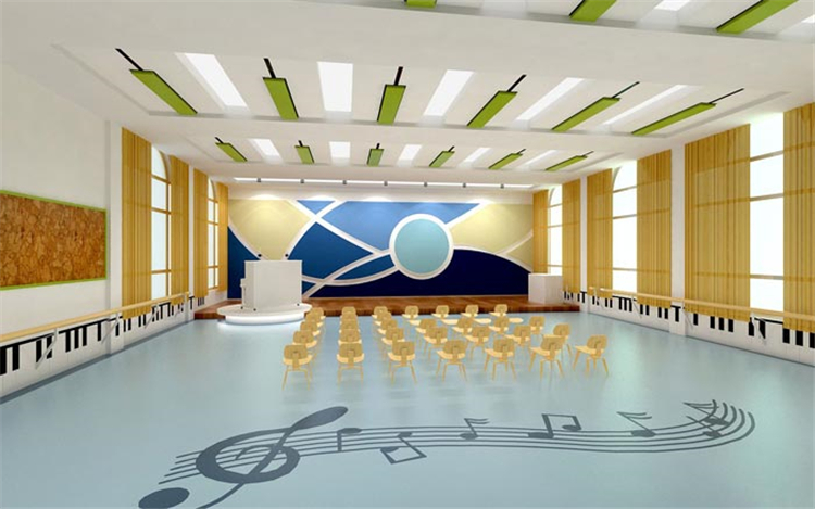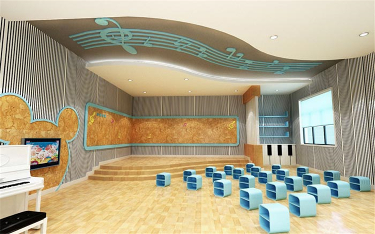 音樂教室的設(shè)計(jì):這里大致可以容納下30多個(gè)小朋友,也就是大概一個(gè)班多一點(diǎn)點(diǎn),能歌善舞是每個(gè)家長對于孩子的特殊期望,對于孩子本身來說也是一個(gè)不可不得的技能,在設(shè)計(jì)師看來若是引導(dǎo)得當(dāng),讓孩子喜歡唱歌、跳舞也不失為一件功德無量的事情。