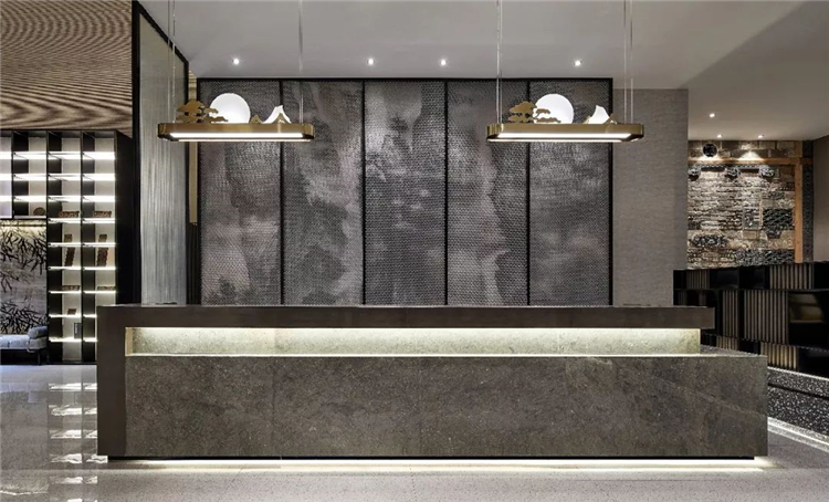 酒店在不同層次的設(shè)計上靈活運(yùn)用了徽州文化的核心特點(diǎn)來汲取神韻氣質(zhì),結(jié)合空間的整體系列性,將文化元素滲透到每一個細(xì)節(jié)中,將經(jīng)典重現(xiàn).營造極具東方美學(xué)觀感的藝術(shù)空間.設(shè)計團(tuán)隊通過對傳統(tǒng)與現(xiàn)代結(jié)合,含蓄與精致并存,兩種不同意境相映成輝,從文化底蘊(yùn)、材料、軟裝色彩......去推敲空間的序列,實(shí)現(xiàn)了酒店的魅力.既體現(xiàn)出人們對當(dāng)代藝術(shù)與文化的追求,又勾勒出東方意境的沉穩(wěn)靜謐.