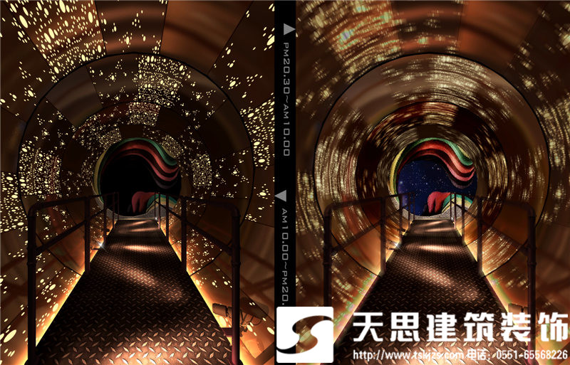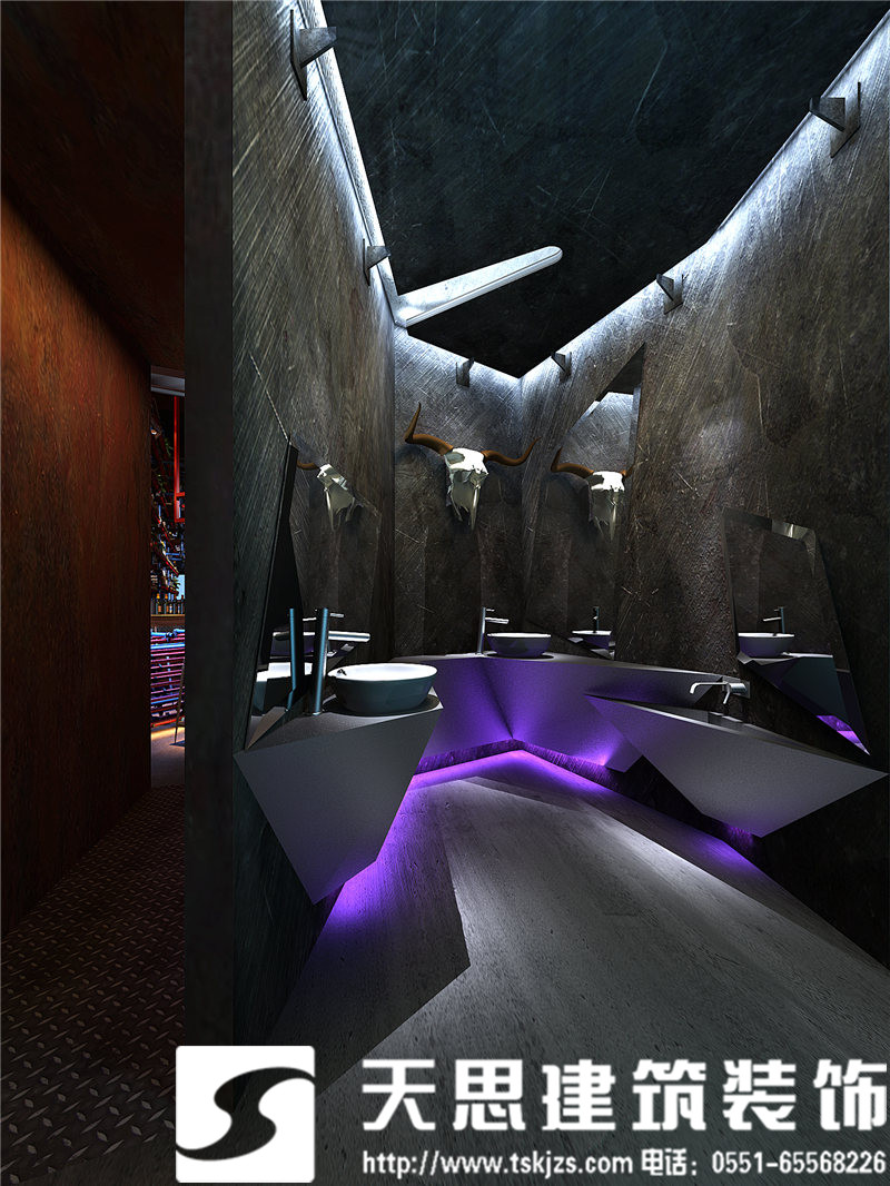 小型吧凳簡單時尚,自然隨意。墻面勾勒的紋理線條,讓空間藝術(shù)感爆棚。地下通道仿若一個旋轉(zhuǎn)型的空間隧道,神秘浪漫。鐵網(wǎng)拱形口又是一種最簡單的表達(dá)。洗手間,金屬質(zhì)感的墻面和藝術(shù)品裝飾,簡潔時尚。鋁制洗手臺搭配淡淡的紫色光源,美輪美奐。