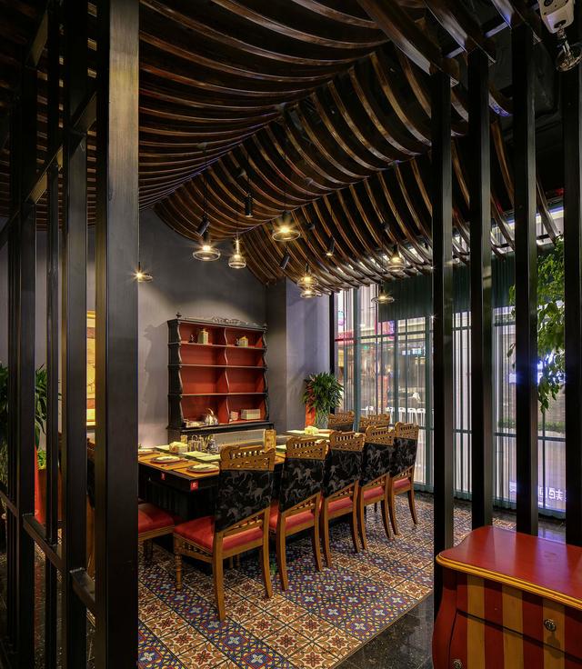 設計時采用色彩的沖撞,詮釋一種低調的腔調-隨性、自我、隨性、自我,恰如這家餐廳新秀傳奇風范的彰顯。自由而富有當代氣息的空間設計,餐廳工業(yè)時代的裝飾細節(jié)與個性且富有設計感的木質家具展現(xiàn)了設計師前沿的設計理念。