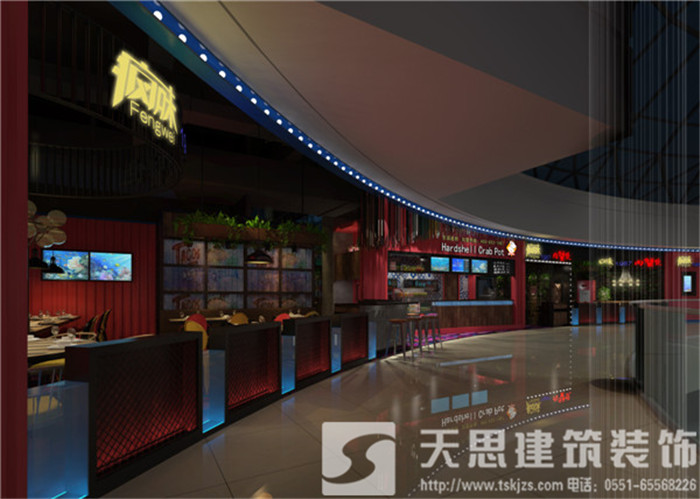 設(shè)計(jì)公司:安徽天思建筑裝飾設(shè)計(jì)部 項(xiàng)目名稱:魚念蝦香辣蝦+一根面設(shè)計(jì)效果 項(xiàng)目面積:600平方 設(shè)計(jì)師:陳工 項(xiàng)目地址:合肥馬鞍山路與南二環(huán)路交口伽僑廣場