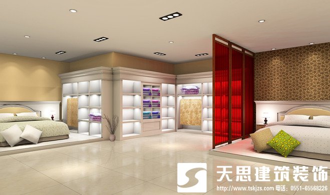 家紡店裝修設(shè)計,家紡店裝修裝飾一定要找正規(guī)專業(yè)的裝修裝飾公司,這樣才能保證設(shè)計和裝修的質(zhì)量!安徽天思建筑裝飾工程有限公司是一家專業(yè)公裝公司,擁有國家等級資質(zhì),集家裝、工裝、綠化園藝、監(jiān)理、裝飾材料為一體的現(xiàn)代裝飾企業(yè)。擁有專業(yè)的設(shè)計和裝修團(tuán)隊,充分實現(xiàn)了人力資源的優(yōu)勢整合。借助先進(jìn)的施工技術(shù)和合理的人員配置,確保服務(wù)的質(zhì)量、時效性和低成本。