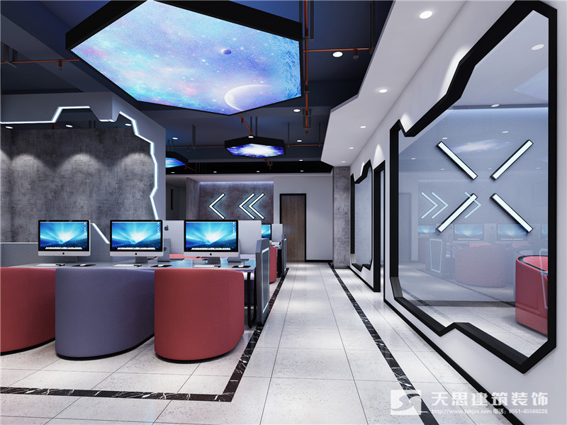 設(shè)計師在自己的經(jīng)驗(yàn)之上,對業(yè)主進(jìn)行了糾正、改善,最后定下設(shè)計出一個以上網(wǎng)、聊天休閑綜合一體的網(wǎng)咖娛樂會所。