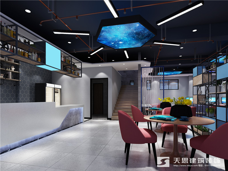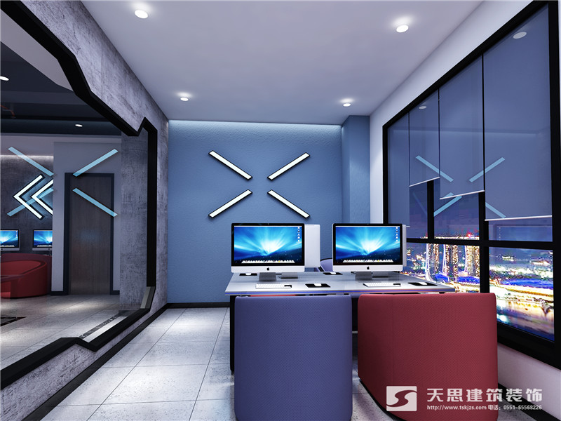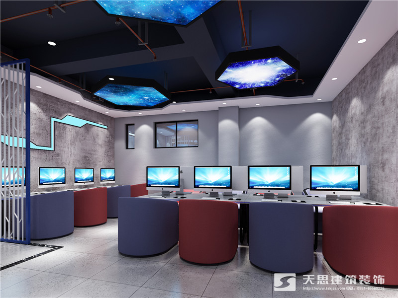 根據(jù)業(yè)主的要求,網(wǎng)咖設(shè)計的整體顏色以淺色為主,中間穿插對比強(qiáng)烈的撞色系來展現(xiàn)效果。