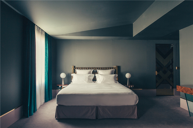 這次給大家介紹的酒店提供25間客房,設(shè)想為私人公寓,通過(guò)六種不同的場(chǎng)景實(shí)現(xiàn)裝飾藝術(shù)美學(xué)。顏色和面料,從芥末黃到勃艮第紅,森林綠和天藍(lán)色成為了工匠制作的藝術(shù)和裝飾物的背景。