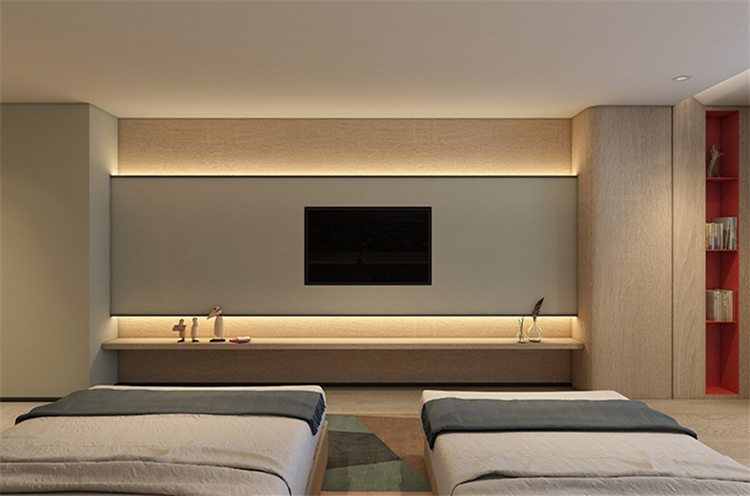在功能的安排上人性化,為顧客帶來舒適的入住體驗與外立面相呼應(yīng),設(shè)計師在完整的用材體系上,增加了對比性明顯的色塊,高度提升了空間的趣味性和耐看度。
