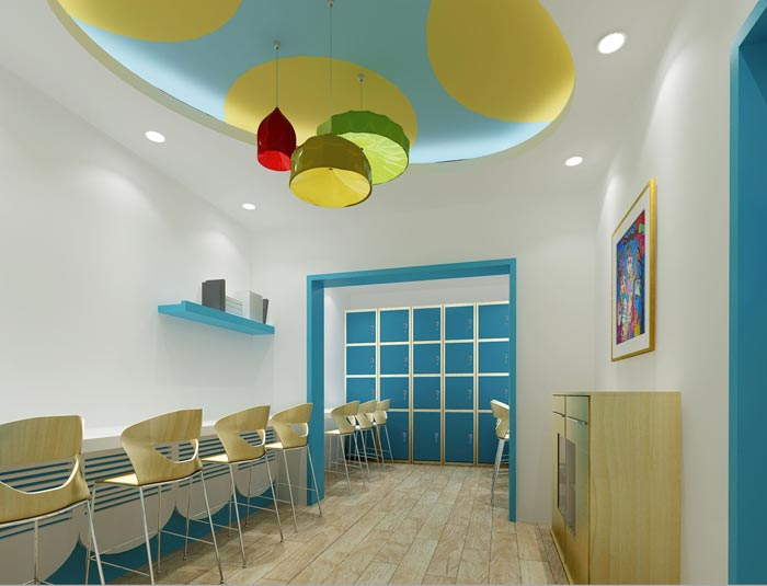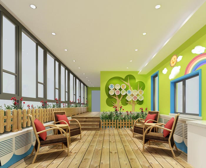 休息區(qū)域的設(shè)計(jì):此處不僅可供教師休息,同時(shí)也可供孩子們?cè)谶@里玩耍、娛樂,設(shè)計(jì)師的目的就是想讓大家在這里可以感受到陽(yáng)光的溫暖,在此處陽(yáng)光滲透到每一處空間,設(shè)計(jì)師希望陽(yáng)光、自然可以掃清教師心中的煩躁,同時(shí)也給孩子更多的溫暖。