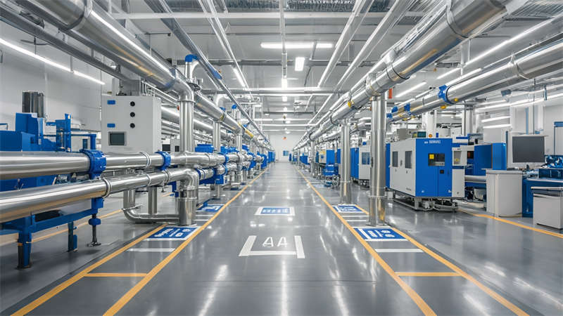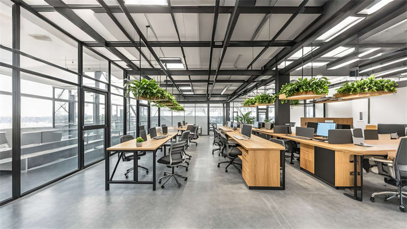 3) 色彩策略運(yùn)用冷色調(diào)提升作業(yè)專注度,暖色點(diǎn)綴緩解視覺(jué)疲勞。材料選擇上,金屬格柵、清水混凝土與環(huán)氧地坪的搭配兼顧耐用性與美學(xué)表達(dá),集成式 LED 照明系統(tǒng)實(shí)現(xiàn)能耗降低。該設(shè)計(jì)在滿足 ISO 生產(chǎn)標(biāo)準(zhǔn)的同時(shí),通過(guò)人性化休息區(qū)與智能管理系統(tǒng),打造現(xiàn)代制造業(yè)空間新標(biāo)桿。