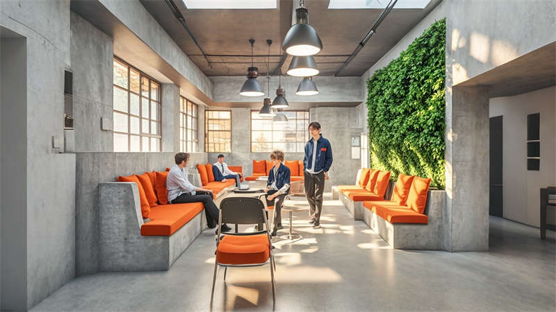 本 8000㎡廠房改造項(xiàng)目采用 ' 科技工業(yè)美學(xué) ' 設(shè)計(jì)理念,整體以工業(yè)灰、冷白為主色調(diào),搭配活力橙與科技藍(lán)作為企業(yè)色。空間規(guī)劃上劃分生產(chǎn)、倉(cāng)儲(chǔ)、辦公、輔助四大功能模塊,通過(guò) 7 米層高實(shí)現(xiàn)立體化布局。