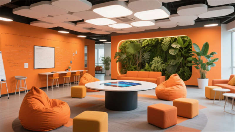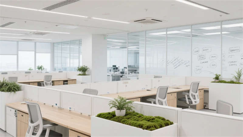 步入其中,純凈的白色與淺灰基調(diào)構(gòu)筑出開闊明亮的基底,大面積玻璃幕墻邀請陽光自由流淌。室內(nèi),垂直綠墻與蔥郁盆栽如音符般跳躍,為嚴(yán)謹(jǐn)?shù)难邪l(fā)環(huán)境注入蓬勃生機(jī)。開放辦公區(qū)強(qiáng)調(diào)協(xié)作與靈活,可書寫的玻璃墻面激發(fā)無限創(chuàng)意;高度自動化的核心生產(chǎn)車間則如同精密的樂章,潔凈無塵的環(huán)境、流線型的自動化設(shè)備與身著無塵服的工程師,共同演繹著尖端制造的嚴(yán)謹(jǐn)與高效。從充滿科技藝術(shù)感的展示廳、活力四射的創(chuàng)意協(xié)作區(qū),到靜謐專注的工作艙、溫馨舒適的休憩社交中心,再到專業(yè)大氣的會議空間,每一處功能區(qū)域都浸潤著統(tǒng)一的未來主義美學(xué)——簡約的線條、智能的光影、環(huán)保的材質(zhì)與克制的企業(yè)色點綴。