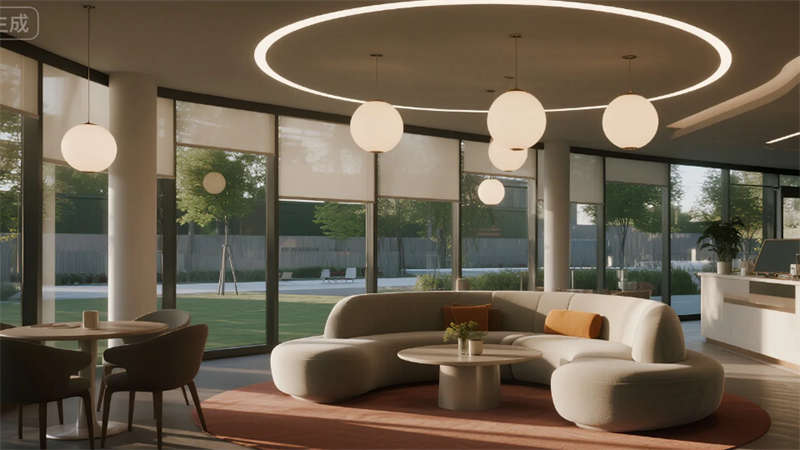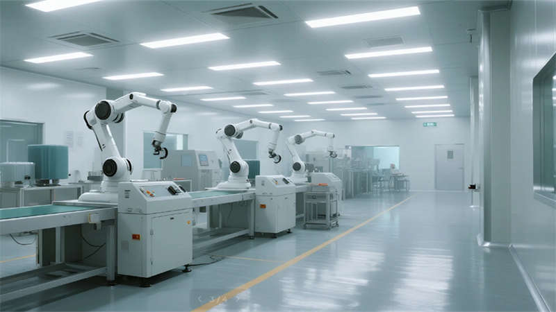 生產(chǎn)空間聚焦高效與潔凈,智能機械臂單元與模塊化管線系統(tǒng)滿足精密材料制造需求,冷色調(diào)照明強化科技嚴謹感。研發(fā)區(qū)域突破傳統(tǒng)廠房格局,落地窗引入自然光與園區(qū)景觀,垂直綠墻凈化空氣的同時激發(fā)創(chuàng)造力。