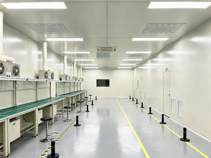 室內(nèi)裝修延續(xù)了外觀的設(shè)計(jì)語言,以淺灰、米白為基礎(chǔ)色調(diào),搭配深灰金屬線條點(diǎn)綴,各區(qū)域材質(zhì)統(tǒng)一,地面均采用耐磨易清潔的環(huán)氧地坪,墻面根據(jù)不同功能需求選用潔凈板或工業(yè)風(fēng)涂料,確保整體視覺協(xié)調(diào)。無塵車間注重潔凈與開闊,通過合理布局設(shè)備與通風(fēng)系統(tǒng),營造出無粉塵、秩序井然的生產(chǎn)環(huán)境;實(shí)驗(yàn)室則突出精準(zhǔn)專業(yè),實(shí)驗(yàn)臺、通風(fēng)櫥等設(shè)施規(guī)劃合理,滿足各類實(shí)驗(yàn)操作需求。?