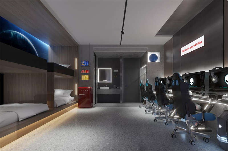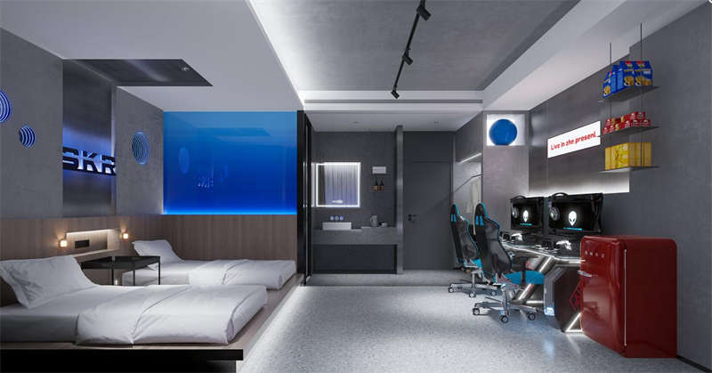相信很多電競(jìng)酒店投資人在籌備設(shè)計(jì)時(shí),都會(huì)思索如何將電競(jìng)元素和入住體驗(yàn)完美融合。一方面需考慮符合電競(jìng)愛好者審美,增加潮酷元素;另一方面則需考慮睡眠質(zhì)量,減少炫目元素。