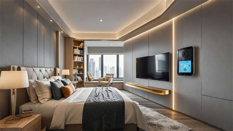 智能系統(tǒng)集成方面,設(shè)置客房環(huán)境自動(dòng)調(diào)節(jié)模塊、會(huì)議室聲光聯(lián)動(dòng)系統(tǒng)及能耗監(jiān)測(cè)平臺(tái)。功能創(chuàng)新點(diǎn)包括大堂可變式藝術(shù)展墻、客房飄窗多功能轉(zhuǎn)換系統(tǒng),以及健身中心的聲光瑜伽模式。環(huán)保設(shè)計(jì)體現(xiàn)在GRG材料應(yīng)用、Low-E玻璃幕墻及雨水回收灌溉系統(tǒng),實(shí)現(xiàn)美學(xué)與實(shí)用性的有機(jī)統(tǒng)一