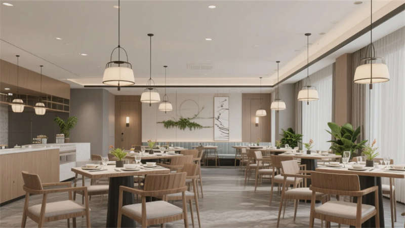 這個酒店設(shè)計以現(xiàn)代簡約風(fēng)格為核心,通過統(tǒng)一的色調(diào)和元素,創(chuàng)造出和諧而優(yōu)雅的空間體驗。大堂作為入口,以淺木色和白色為主調(diào),配以舒適的沙發(fā)和綠植,營造出welcoming的氛圍。前臺延續(xù)簡約理念,木質(zhì)柜臺和藝術(shù)細(xì)節(jié)彰顯精致感。餐廳采用開放式布局,木質(zhì)桌椅和吊燈的點綴,讓用餐時刻充滿輕松與自然氣息。酒吧區(qū)則以深色吧臺和暖光照明,提供私密而時尚的社交空間??头吭O(shè)計注重舒適與隱私,大窗戶引入城市景觀,簡約家具確保寧靜的休憩環(huán)境。會議室專業(yè)而高效,中性色調(diào)和隱藏照明支持專注的商務(wù)活動。健身房融入鏡面和綠植,活力十足又不失簡約美感。水療區(qū)則強調(diào)寧靜,柔和燈光和自然元素促進(jìn)身心放松。整個項目強調(diào)人與環(huán)境的連接,每個功能區(qū)都服務(wù)于寧靜與精致的整體體驗,為賓客打造難忘之旅。